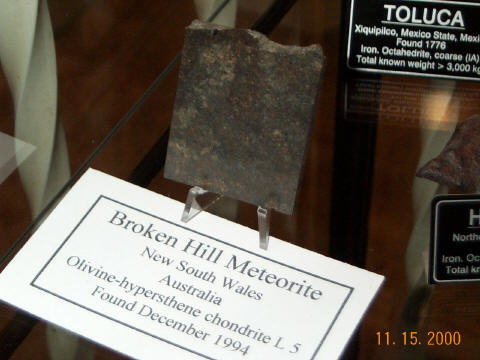 | Broken Hill | New South Wales, Australia | Found 1994, December | Stone (L6) | 25.2g Part slice Sold B.V. |