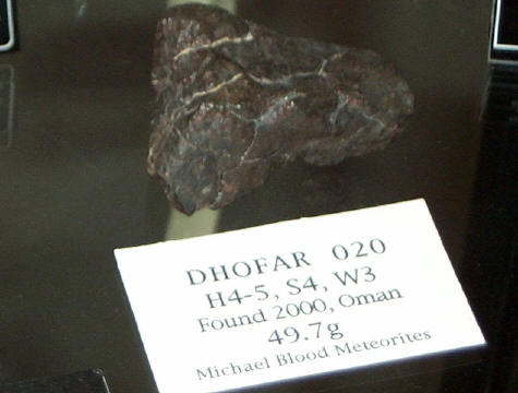 | Dhofar 020 | Oman | Found 2000 | Stone (H4-5), S4, W3 | 49.7g Desert varnished |